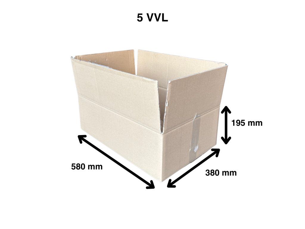 Kartonová krabice 5VVL o rozměrech 570x370x238 mm.